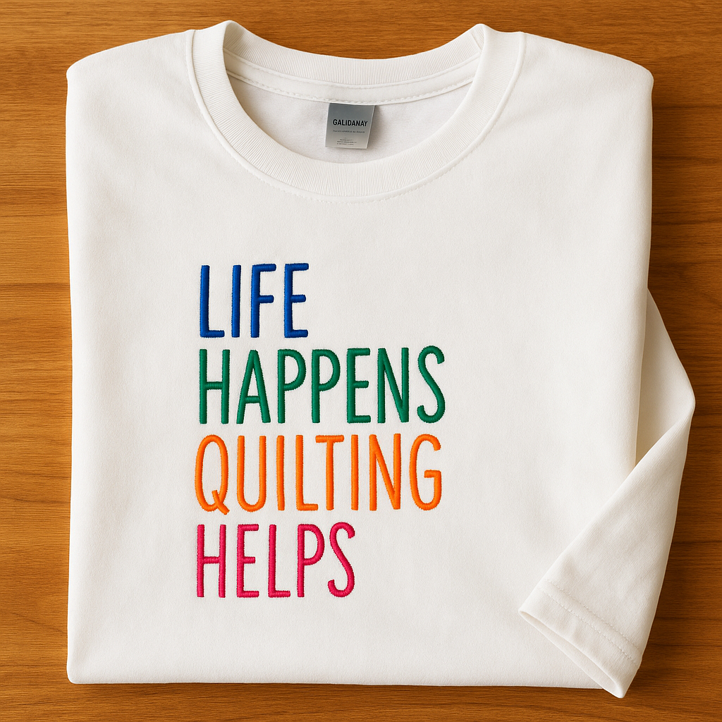 When life gets overwhelming, there's nothing like the calm and comfort of quilting to set things right. This shirt perfectly captures what every quilter knows - that sometimes the best therapy comes with a needle, thread, and beautiful fabric.
